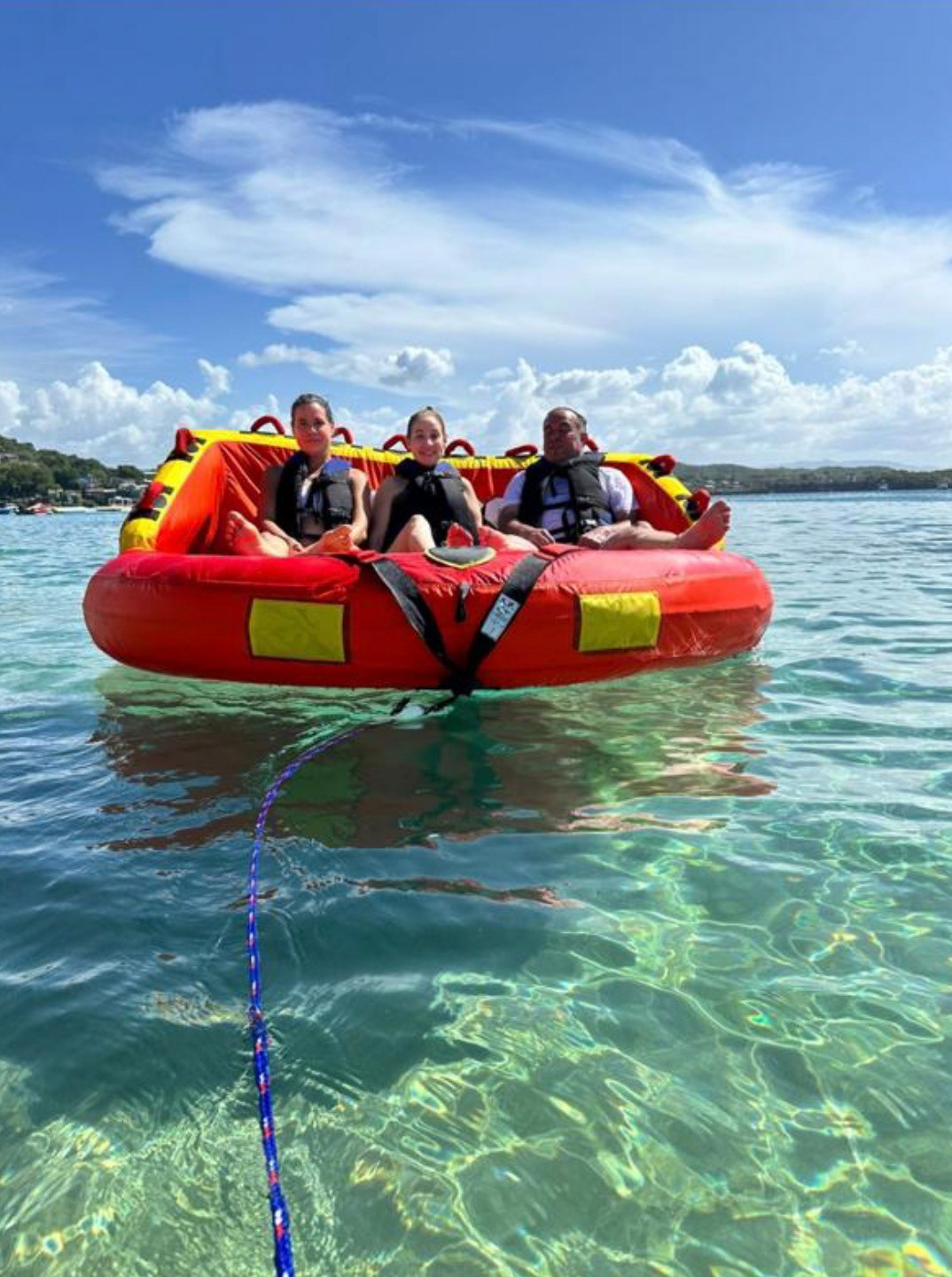 Get ready for pure fun on the water! Our Banana Boat Tour in Sosua Bay is the perfect activity for families, friends, and groups looking for excitement. In just 15 minutes, you’ll enjoy speed, laughter, and splashes as you ride across the crystal‑clear Caribbean waters.